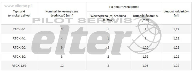 Rurki termokurczliwe cienkościenne z klejem RTCK wykonane są z wysokiej jakości poliolefinu oraz kleju termotopliwego. Służą do ochrony przewodów i kabli. Szczególnie przeznaczone do zabezpieczania przed działaniem wody. Posiadają wysoki współczynnik obkurczania co w połączeniu z dużym zakresem temperatur pracy umożliwia zastosowanie rurek w wielu zróżnicowanych środowiskach pracy.